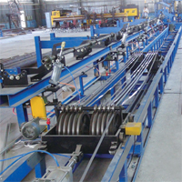 本生產(chǎn)線實現(xiàn)了鋼帶自動開卷、自動矯平、自動送帶、自動沖片、自動焊接整個全自動流程